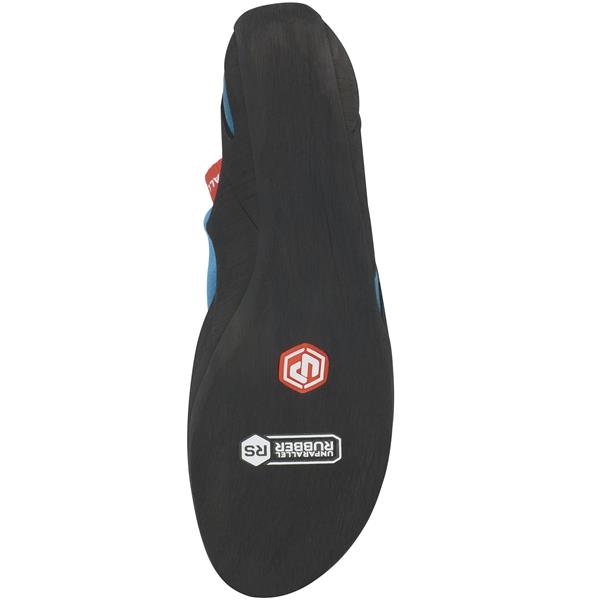 RS guma na podplatu in srednje trd vmesni vložek ponujata odlično kombinacijo občutljivosti in trenja. RS guma nudi visoko stopnjo občutljivosti pod prsti, medtem ko vmesni vložek zagotavlja podporo pri stopanju po manjših stopih in daljših plezalskih vzponih.